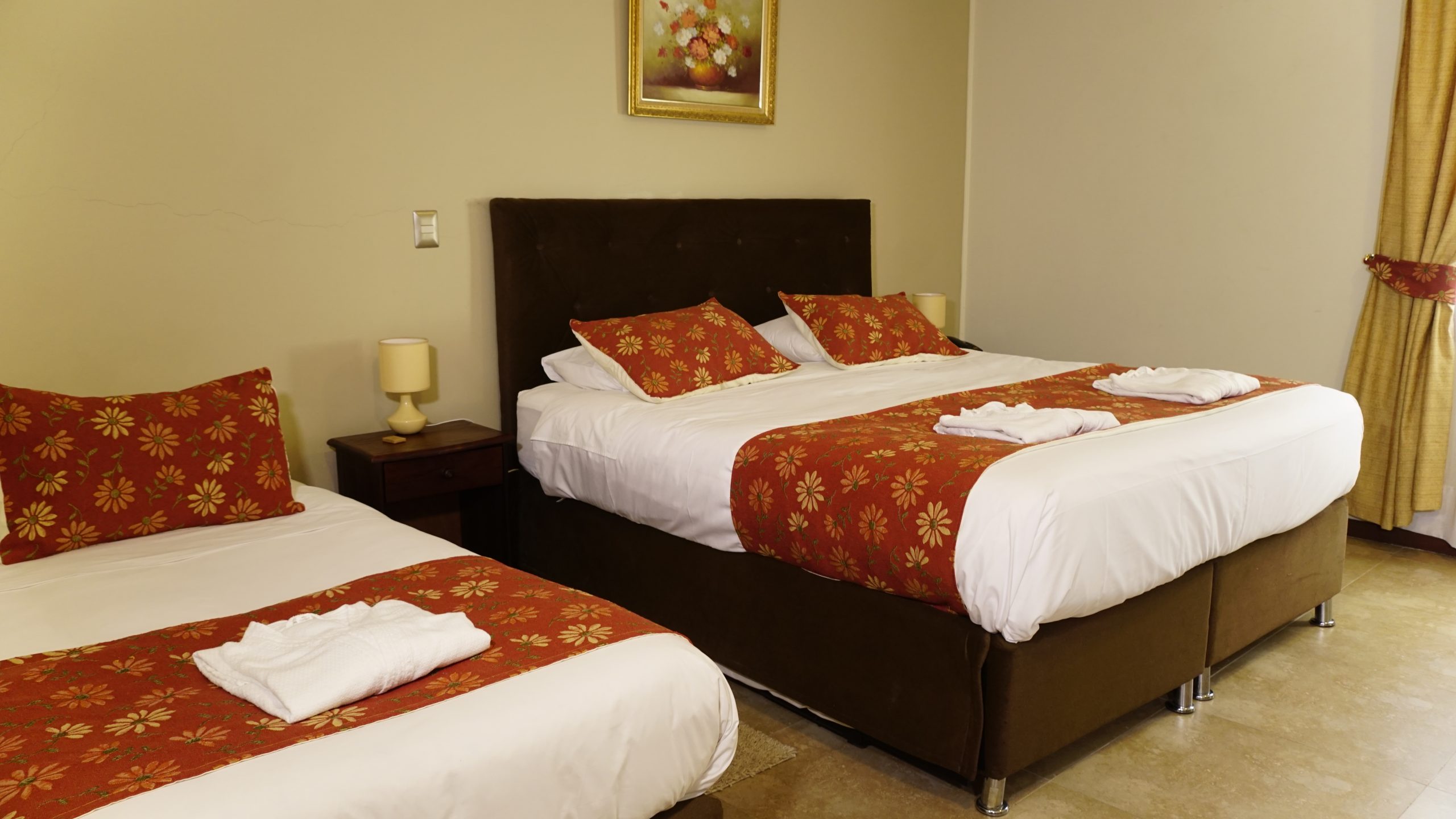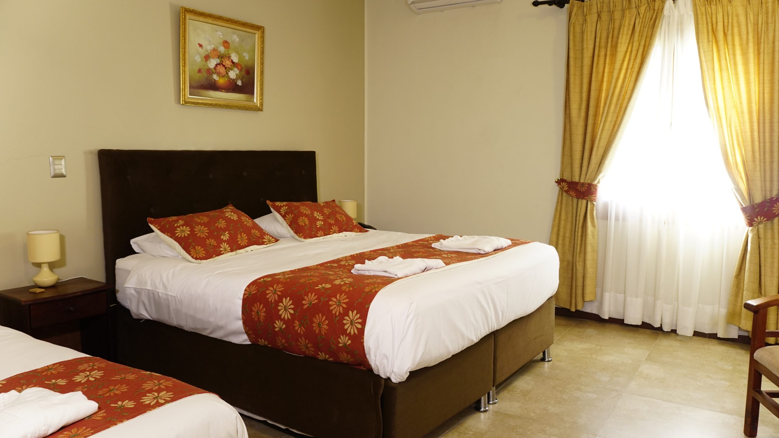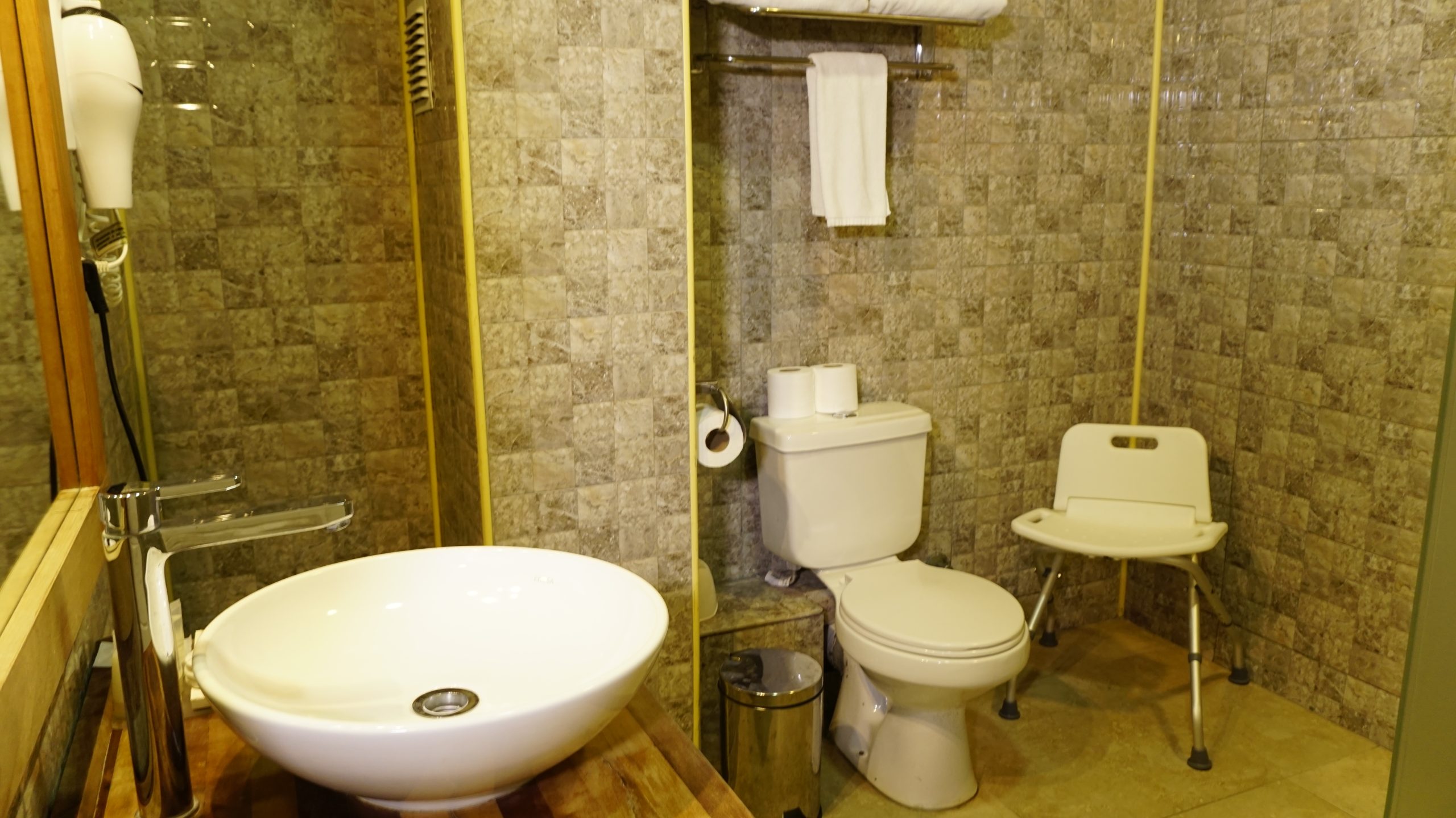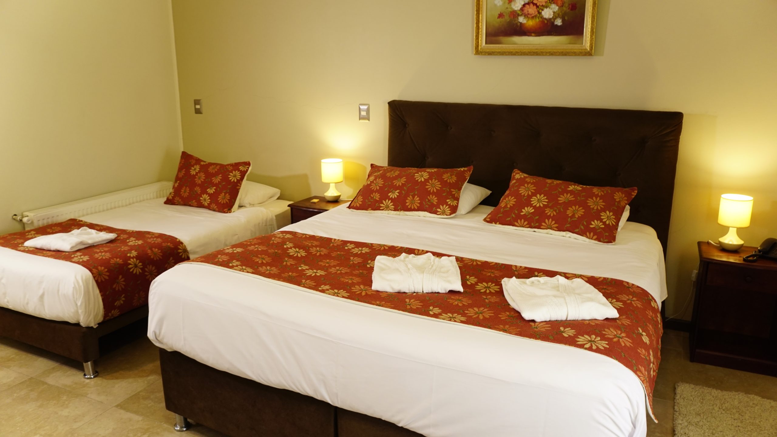 Tipo de camas: La habitación cuenta con una cama King y una cama de 1 1/2 plazas, diseñada con una altura especial para personas con movilidad reducida. Además, es posible añadir una cama adicional de 1 plaza, si se requiere, por un costo extra.